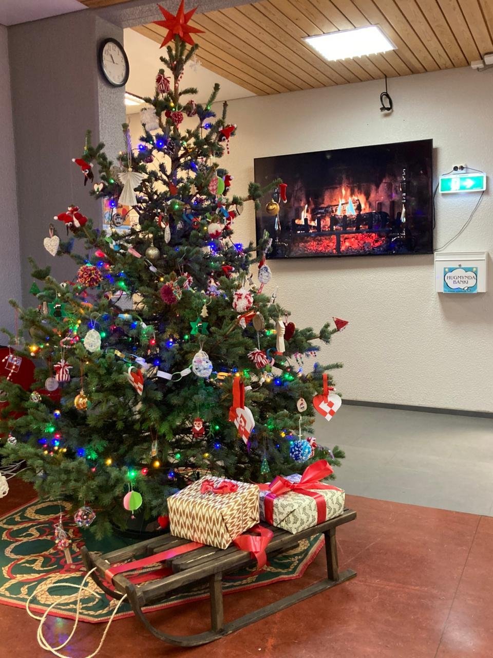 Jólatré skólans stendur hið glæsilegasta í anddyri skólans. Það voru nemendur 4.bekkjar sem fóru með Ásdísi útikennslukennara í leiðangur til að velja tré skólans og koma því úr skóginum og hingað til okkar í skólann. Elstu nemendur skólans hafa svo það hlutverk að setja seríur á tréð og skreyta það en allt skrautið sem fer á tréð hefur verið unnið af nemendum skólans á síðustu árum. Tréð í ár er fallega skreytt og var gaman að fylgjast með nemendum sem komu í litlum hópum til að vinna verkefnið og það skipti alla hópa miklu máli að vanda vel til verka.