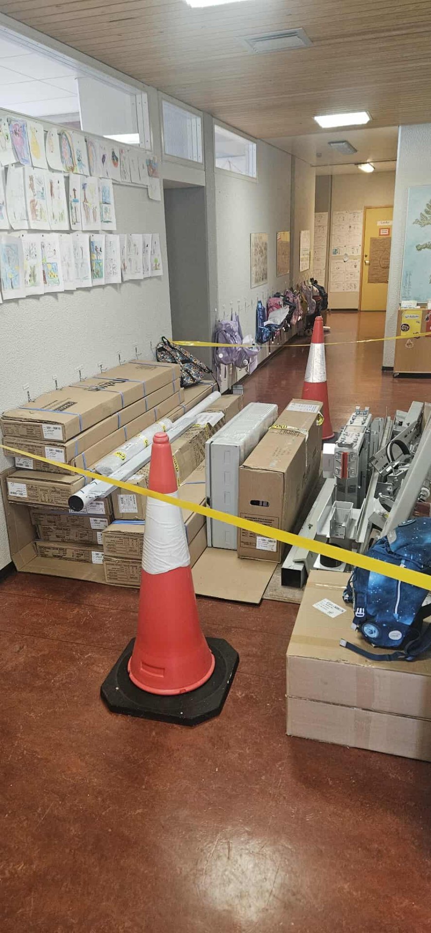 Búið er að ferja til okkar allskonar lyftudót og á næstu dögum verður farið af stað í vinnu en á meðan þá pössum við öll í sameiningu upp á lyftuna sem liggur núna í mörgum pörtum á gólfinu á leiðinni inn á gang hjá 1. & 2.bekk