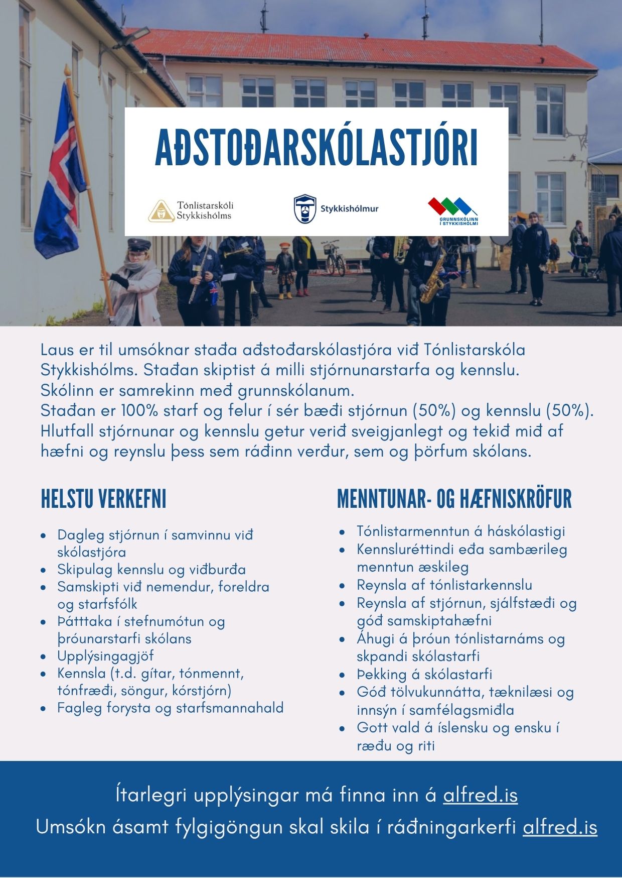 Nánari upplýsingar veitir Þóra Margrét Birgisdóttir, skólastjóri grunn- og tónlistarskóla, í síma 433-8178 eða með tölvupósti.